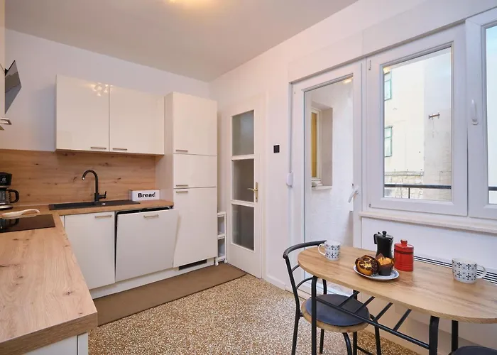 Eine voll ausgestattete Küchenzeile mit einem Wasserkocher, einem Kühlschrank und einem Herd sorgt für einen komfortablen Aufenthalt. Die Gäste dieses Apartments können den Komfort von Ausstattung zur Kaffee- & Teezubereitung genießen. Das Restaurant Pizzeria Portas Food & Restaurant bietet italienische Spezialitäten und liegt ca. 200 Meter von diesem Apartment entfernt. Diese Unterkunft ist sehr nahe an der Bushaltestelle HNK - Izlaz.